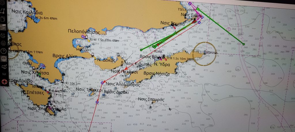 Z lekkim rozczarowaniem opuszczamy marinę Alimos, kierując się w jedynym nie sztormowym kierunku, zachodnią część Zatoki Sarońskiej.