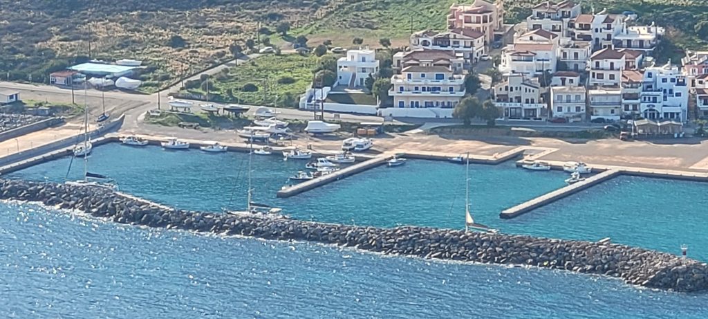 Gdy tylko pojawiliśmy się w główkach portu z oddali dał się słyszeć dźwięk starego skutera – to bardzo pomocny grek Matheo, który odebrał od nas cumy, zaoferował świeżą wodę, a potem zaprosił na obiad w jego knajpie w dalszej części dnia.