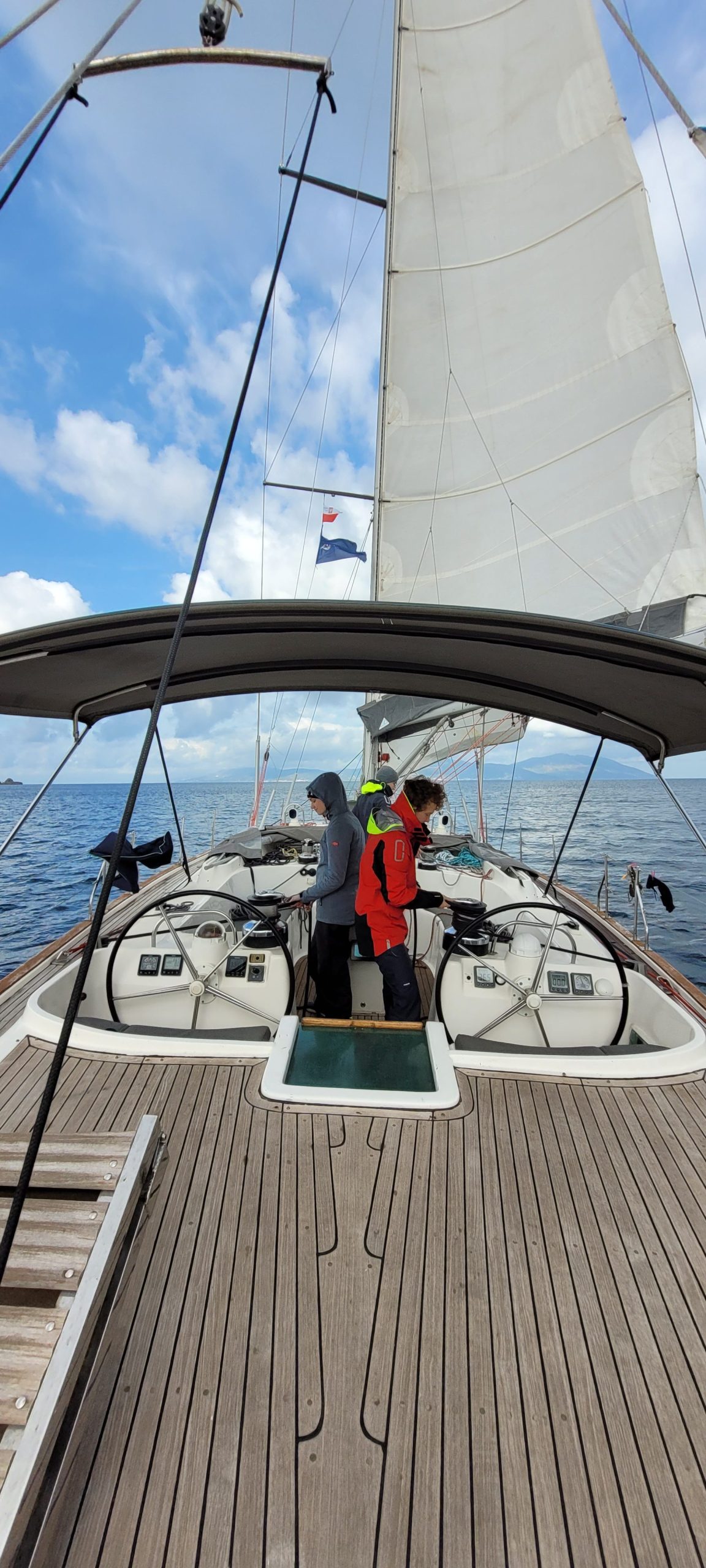 Osiągaliśmy zawrotne 11 węzłów, tworząc falę, na której inne jachty dosłownie surfowały. W pewnym momencie znikąd pojawiły się skutery wodne, które również wykorzystały tę falę do skoków i innych akrobacji.